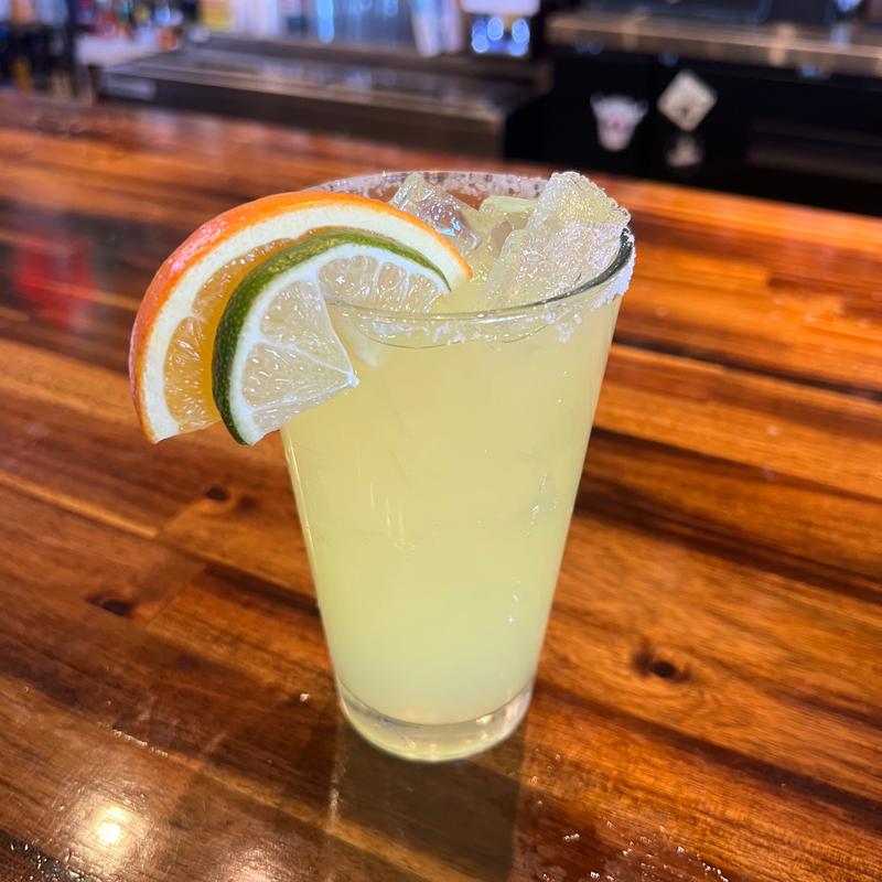 Espolon Tequila, Cointreau, Sweet n Sour, Muddled Jalepenos and Lime, Grand Marnier Floater with a Tajin Rim and Lime Garnish