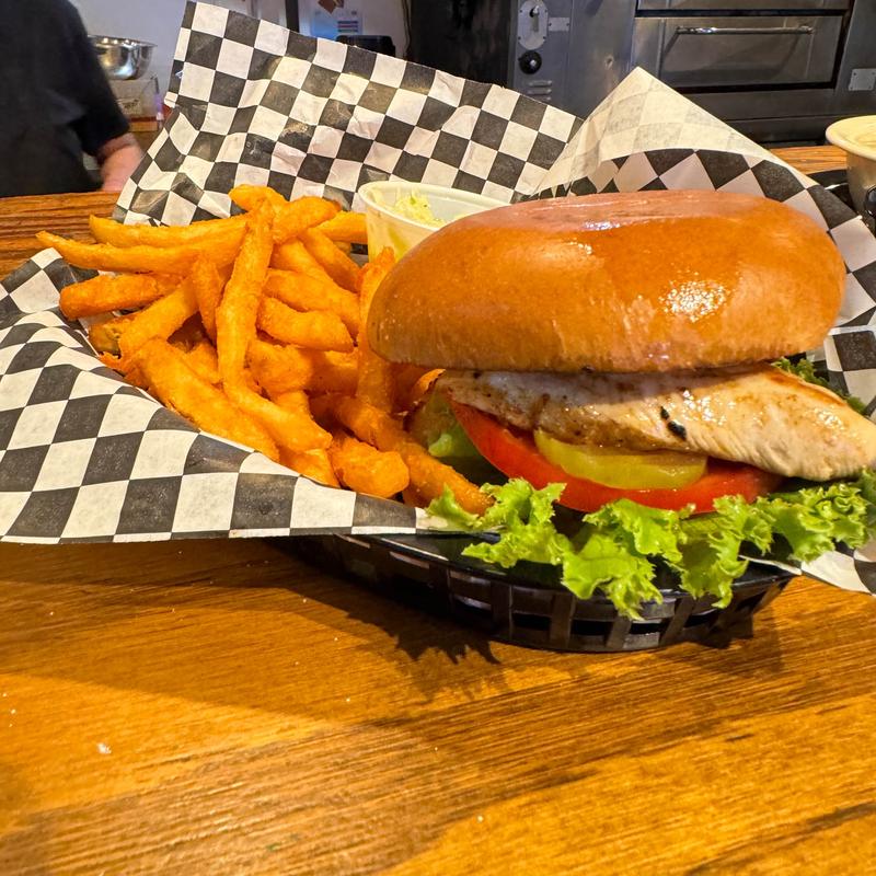 A hand-breaded chicken breast fried golden and topped with lettuce, tomato, pickle and mayo. Crispy, juicy, and built for flavor.