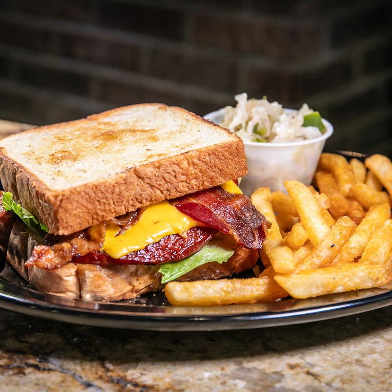 A southern favoirte. The savory flavors of thick-cut black forest maple bacon, grilled jalapenos, sauteed onions, sweet BBQ sauce, topped with Pepper Jack cheese.